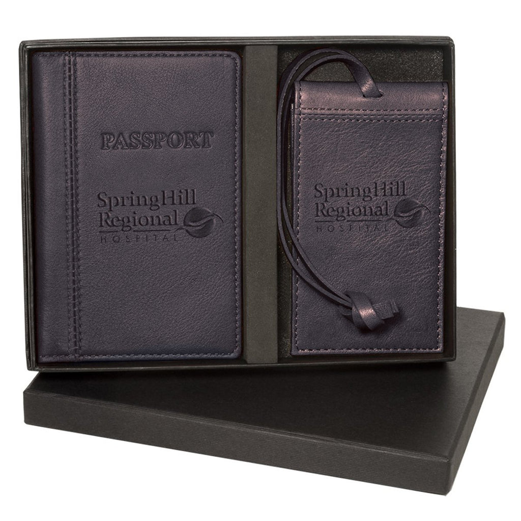 Leeman Navy Blue Voyager Lloyd Harbor Passport and Magnetic Luggage Tag Set can help your company logo "travel far"! It combines a Magnetic Luggage Tag and Passport Jacket with each piece made from Leather and finished with faux suede lining. Add your custom imprint and give them out at the next trade show, convention or conference you attend.The minimum order for this product is 25 pieces.