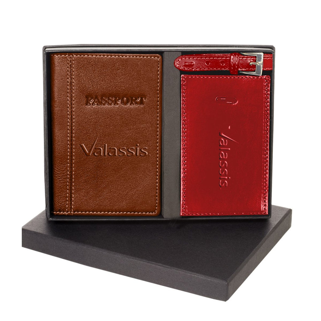 Leeman Red Whitney Peconic Passport and Luggage Tag Set