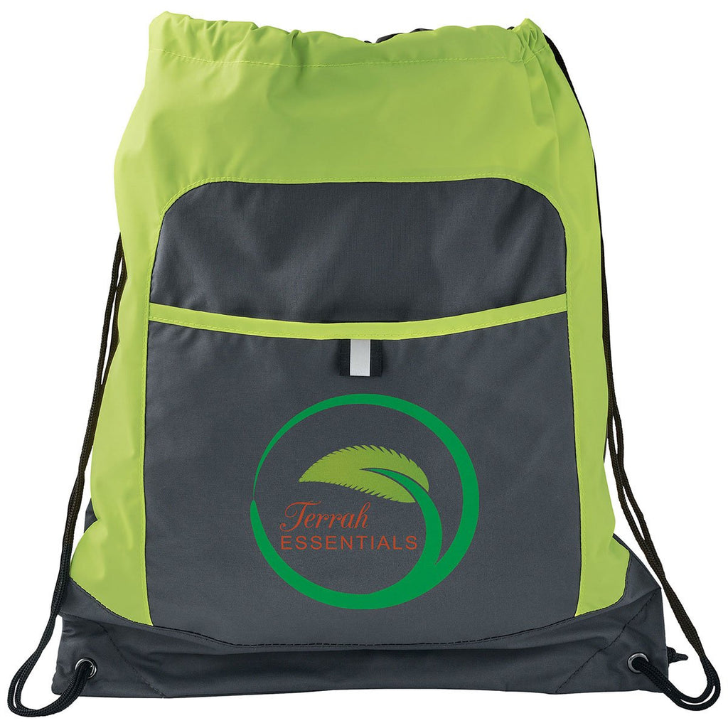 The Bullet Lime Green Grey Color Pop Drawstring Bag is designed in a way that can help your corporate logo pop, making this product a promotional tool that you can hand out at recruiting events and trade shows. This logoed bag's versatility can provide your company name with exposure in all kinds of settings.