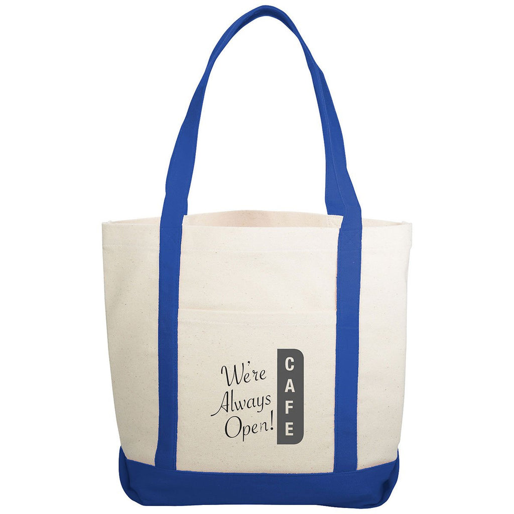 If you want to welcome new hires and promote your company name, the Bullet Royal Blue Casablanca 10oz Cotton Canvas Boat Tote can do the job. You could add your corporate logo, and your workers can use this gift over and over at the supermarket. You also could hand out this logoed bag at sponsored events. The minimum order for this product is 48 pieces.Highlights
