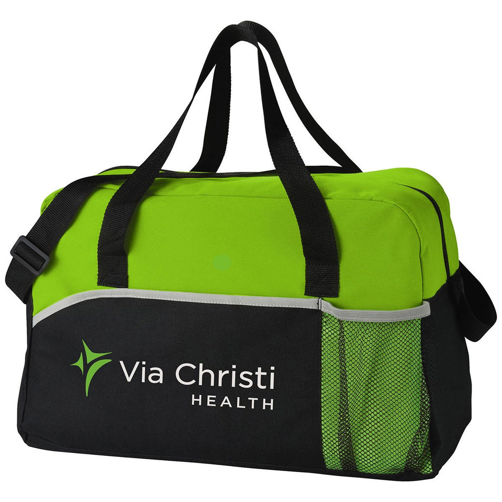 The Bullet Lime Green Energy 17" Duffel Bag stands out among gym bags and can be an effective promotional tool when you add your corporate logo. The mesh water bottle pocket is a nice feature, which makes this logoed bag a keeper when you hand it out at trade shows and recruiting events.The minimum order for this product is 50 pieces.