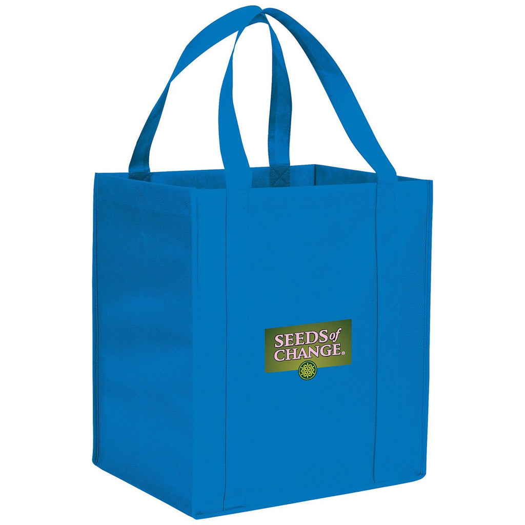 The Bullet Process Blue Hercules Non-Woven Grocery Tote can be an emphatic promotional tool for your company. This is a sturdy, re-usable grocery bag, and your company name will really stand out as it decorates this box-like shape. Your brand will get lots of exposure when this logoed bag is used again and again.The minimum order for this product is 200 pieces.