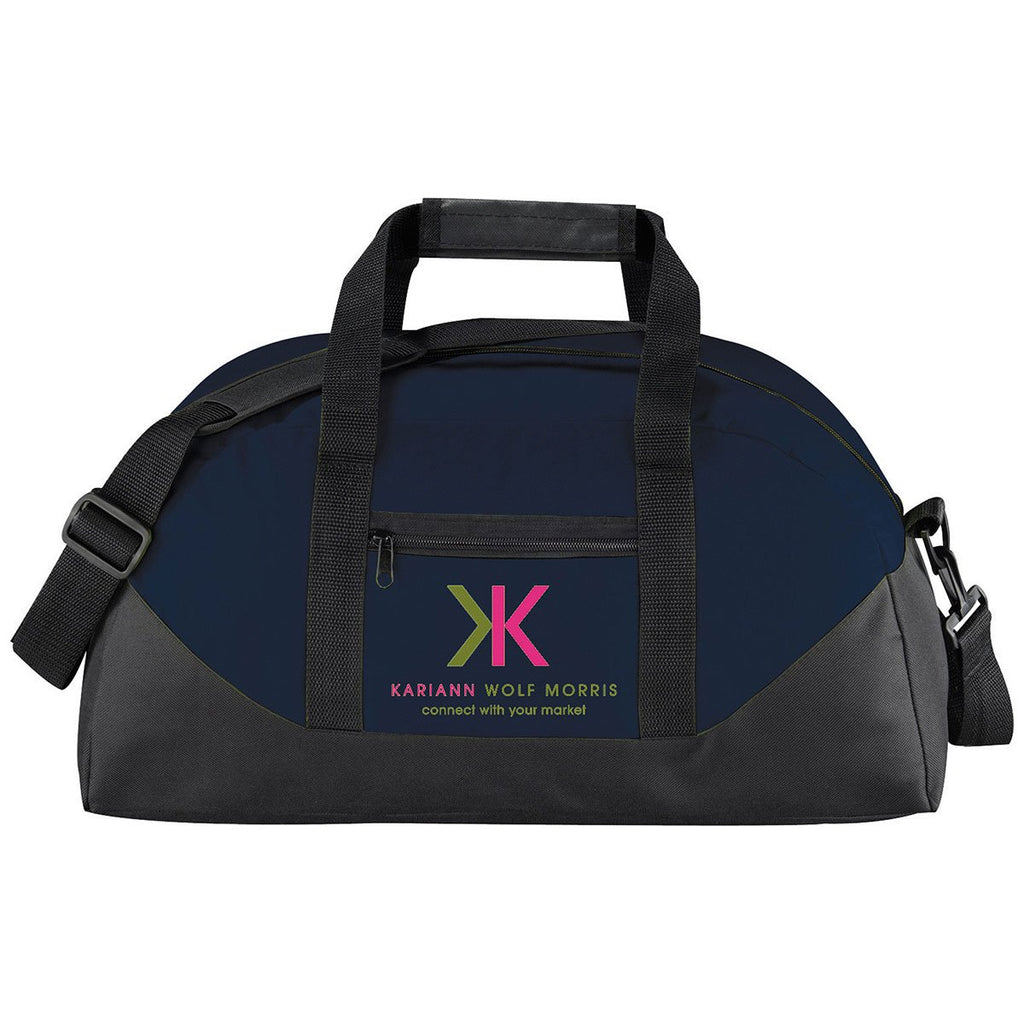 The Bullet Navy Blue Stadium 18" Duffel Bag can help your company carry out its health and wellness program when you order a supply with your corporate logo and gift it to your employees. When your people take this logoed bag to the gym, it will be a promotional tool that associates your brand with wellness.The minimum order for this product is 50 pieces.