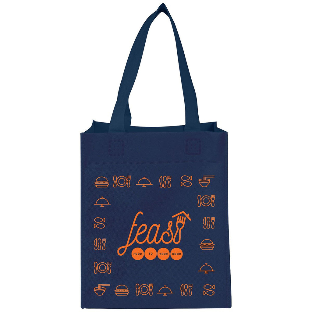 The Bullet Navy Blue Basic Grocery Tote would be a great giveaway item, and with your corporate logo it can be a multipurpose promotional tool. You could hand these out as employee gifts, and your workers would be taking your company name to the market over and over in this re-usable logoed bag. The minimum order for this product is 500 pieces.Highlights