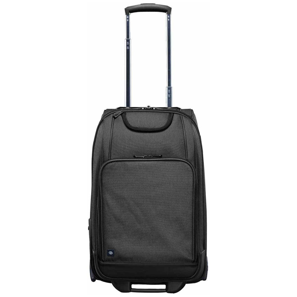 Enjoy a weekend adventure with the Stormtech Black Jetstream Carry On with the custom logo of your choice. With dual rolling wheels and 2 stage telescopic handle, this bag is the perfect size to use as a carry on so you do not have to wait for your luggage. Add a company logo to offer this as a high-end gift for those weekend warriors who have to travel for work. This bag is designed for convenience with separate laundry storage and internal compression straps to make your adventure organized and seamless. Whether headed to an outdoor event or travelling across the state for a meeting, this carry on will make life easier.Highlights