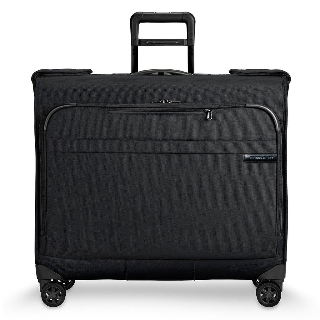 The Briggs & Riley Black Baseline Wardrobe Spinner is structured for those corporate warriors looking for a roomy bag for all clothing of extended trip but also want hassle-free travelling and effortless maneuverability. This garment bag can hold multiple suits, shoes, other clothing items, and accessories. Four spinner wheels for effortless full-range of navigation make it to their final destination with ease.Highlights
