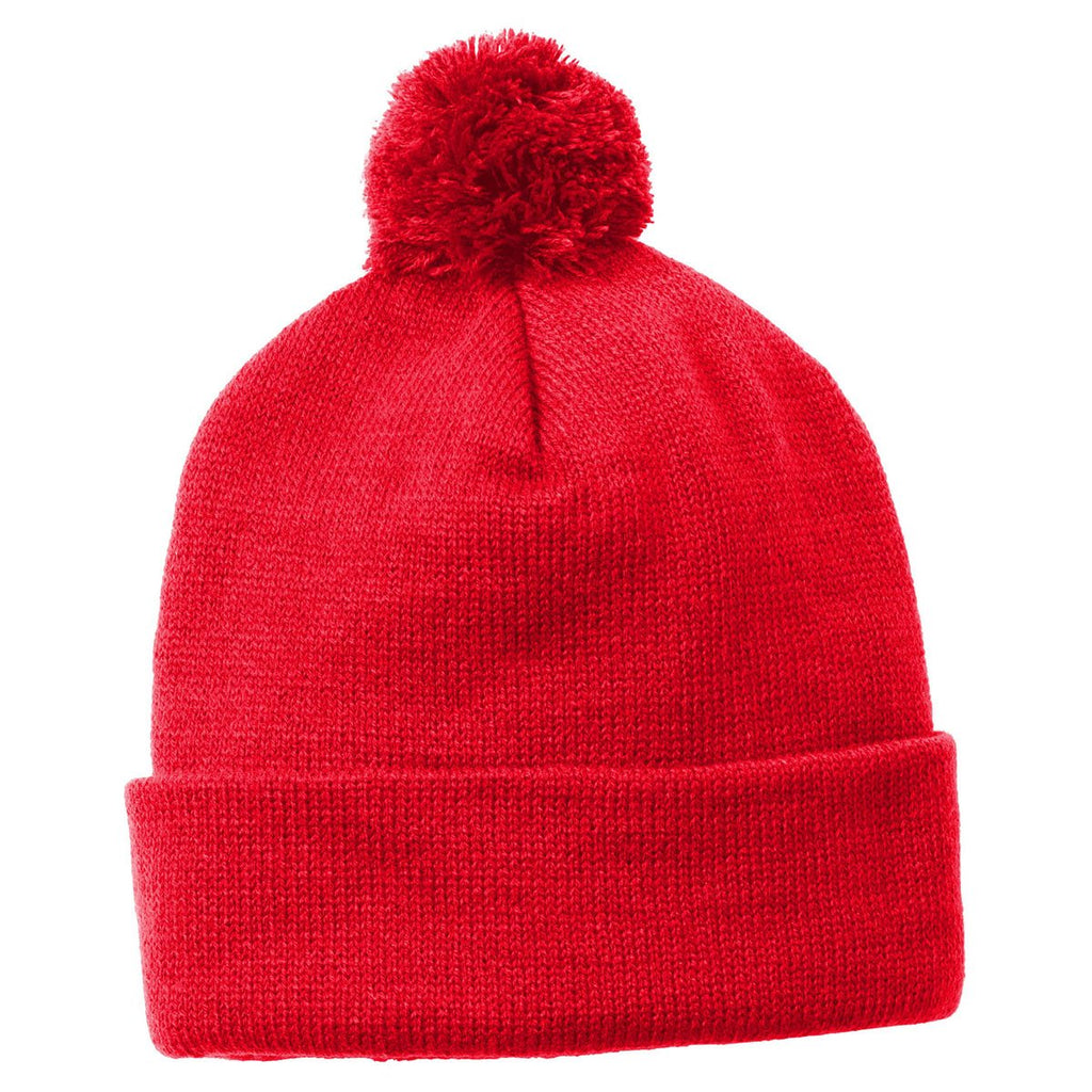 Sport-Tek True Red Solid Pom Pom Beanie