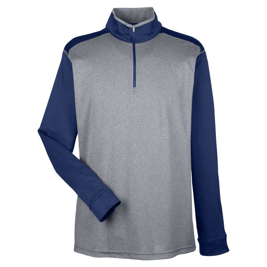 UltraClub Men's Grey Heather/Navy Cool & Dry Sport Two-Tone Quarter-Zip Pullover
