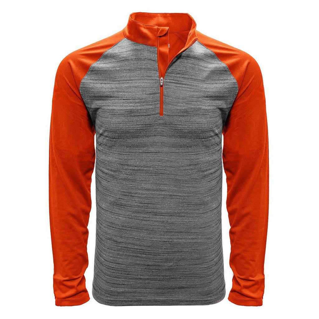 The Levelwear Men's Heather Grey/Orange Vandal Quarter Zip is a lightweight piece of activewear golf apparel. The long sleeves are available in various colors to complement the predominant gray color. That gray provides a neutral background if you want the product custom made with your company logo embroidered on the chest, and the Levelwear Men's Heather Grey/Orange Vandal Quarter Zip isn't only for golf. Your company can buy a bunch of these and hand them out as employee gifts. It would give your workers another option in their wardrobe if your corporate culture allows for dress-down days or casual outdoor company events.Highlights