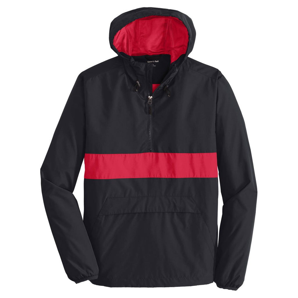 As a jacket for all seasons, the Sport-Tek Men's Black/True Red Zipped Pocket Anorak includes a large zippered pocket that stores your valuables. It is frustrating to hear the smartphone ring and not be able to retrieve it in time to take phone calls. The large zippered pocket runs across the front of the jacket to give you instant access to electronic devices. Sport-Tek goes beyond standard comfort features by adding a chin guard and three-panel hood. One-hundred percent polyester woven sleeve linings keep your arms warm. Optimize the marketing potential of the anorak by attaching your company logo to the large embroidery area.Highlights