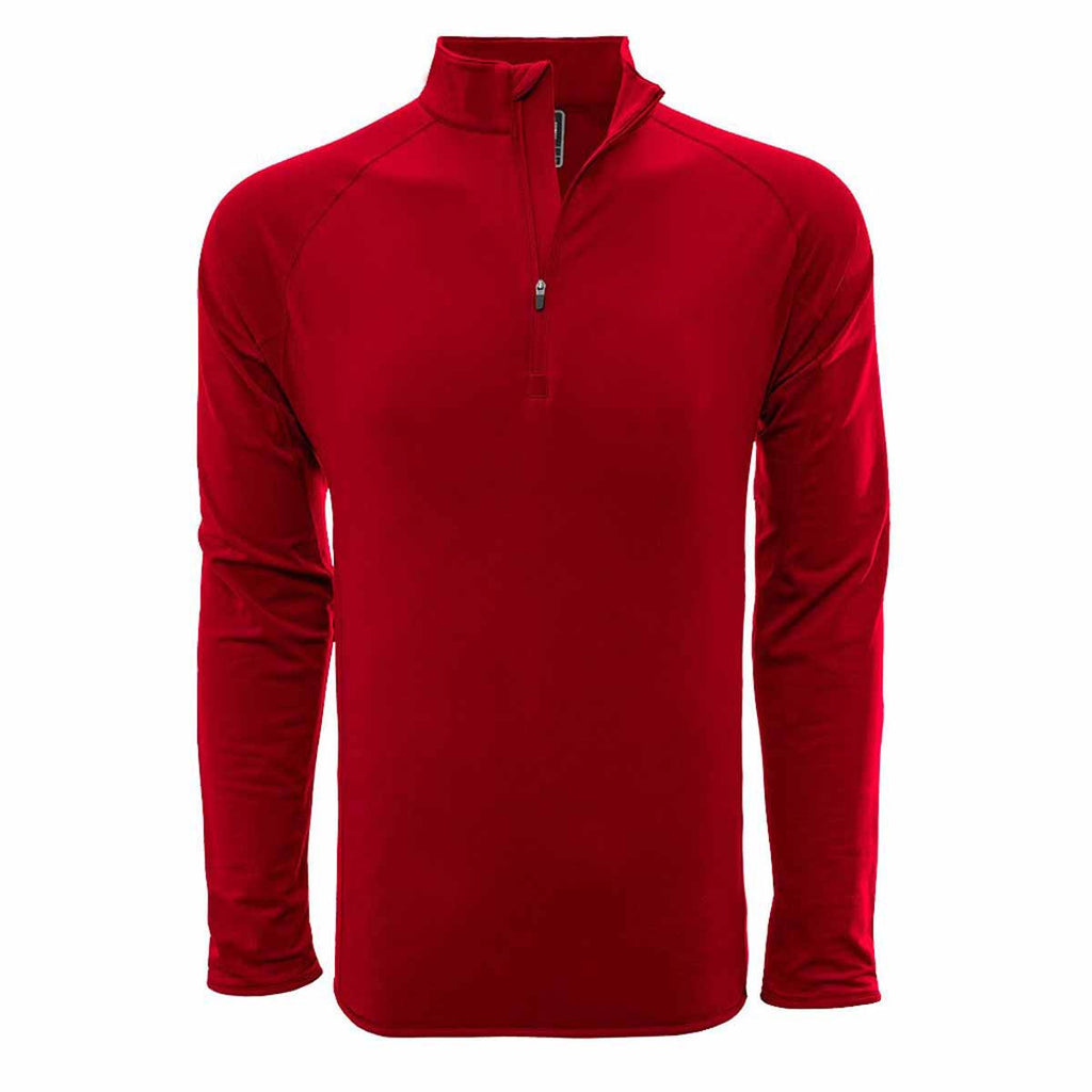 Blended polyester and spandex make the embroidered Levelwear Men's Flame Red Metro Quarter Zip ideal for active professionals. The versatile quarter zip includes stretch knit fabric that increases your movement flexibility on a rugged backcountry trail. Raglan sleeves and under arm paneling create a sleek appearance that changes the outdoor active wear game. The brushed back fabric presents a visually appealing appearance that gets you noticed at outdoor corporate events. Leverage the notice paid to the fashionable quarter zip by adding your company logo on the large imprint area. With a custom logo, you expand your brand's presence in the community.Highlights