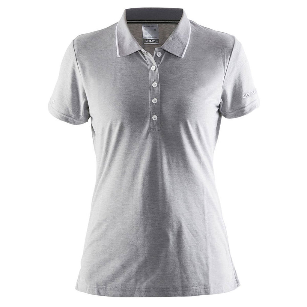 The Craft Sports Women's Grey Melange In-the-Zone Polo with your custom logo on it is ideal for marketing your brand. If you include it in your next corporate giveaway, your employees will be thrilled. Its sporty style is appealing to almost everyone and never goes out of style. It has a comfortable fit and is made of soft and comfortable polyester with cotton. Give it to your employees on any special occasion and advertise your brand with this stylish shirt. They can wear it when they are meeting their friends, going for a walk or picking their kids up from school.Corresponding Men's Style: Craft Sports Men's Grey Melange In-the-Zone Polo