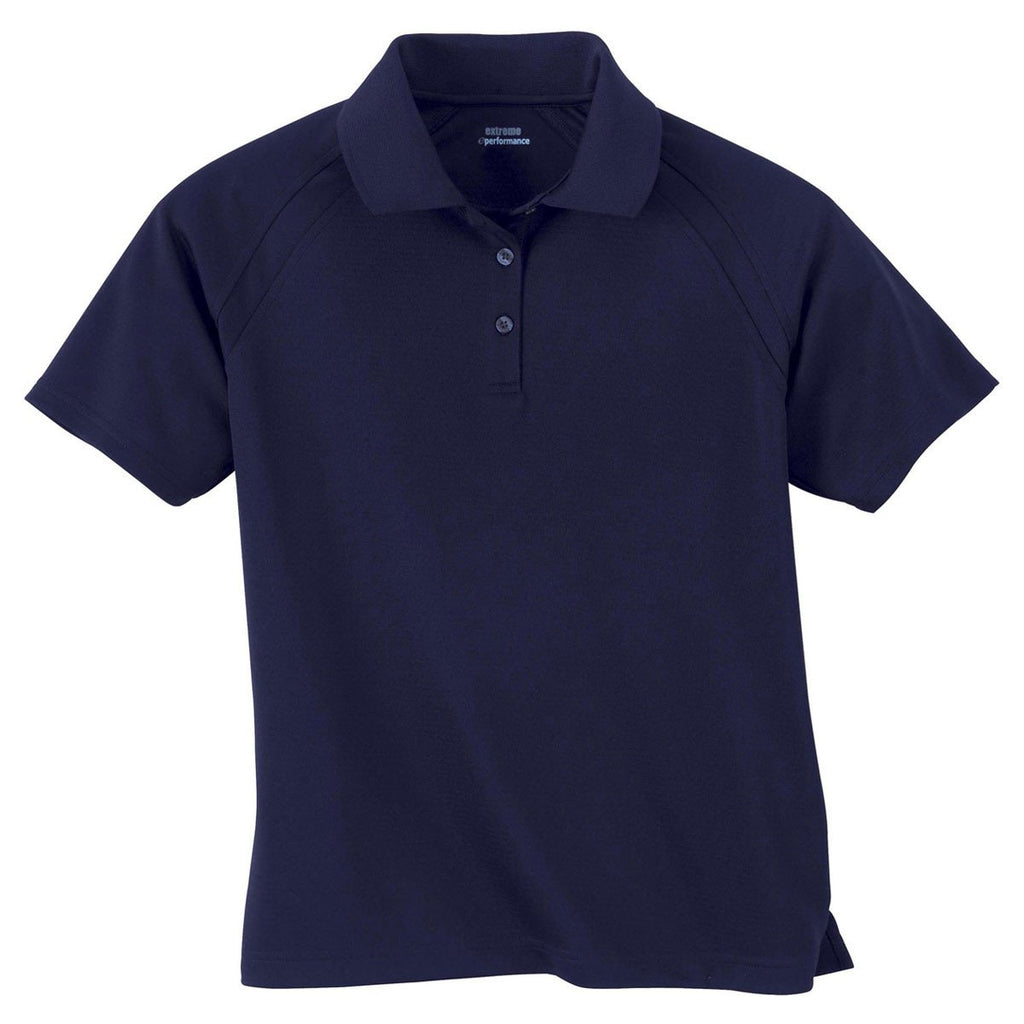 One-hundred percent polyester ottoman creates a rugged Extreme Women's Classic Navy Eperformance Ottoman Textured Polo. Wear the versatile polo to work for a corporate meeting and keep the chic shirt on after work for a night on the town. Moisture wicking technology quickly evaporates perspiration to create a cooling effect on the skin. Outstanding microbial performance keeps the polo looking and smelling fresh throughout the day. The matching flat-knit collar complements the sleek jacquard ottoman body and sleeves. Pique insert raglan panels seal the high fashion deal. Add your corporate logo to reach more customer prospects.Highlights