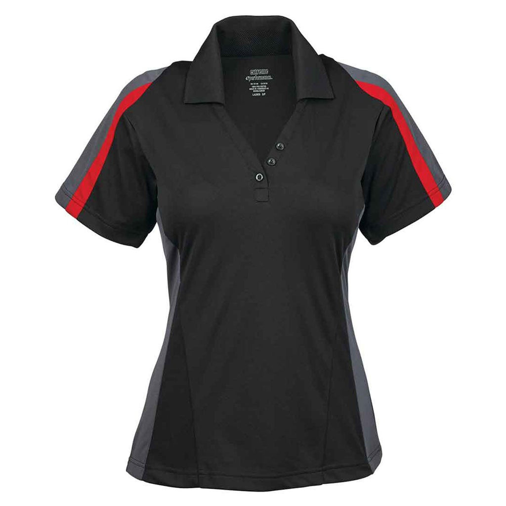 Extreme Women's Black/Classic Red Eperformance Strike Colorblock Snag Protection Polo