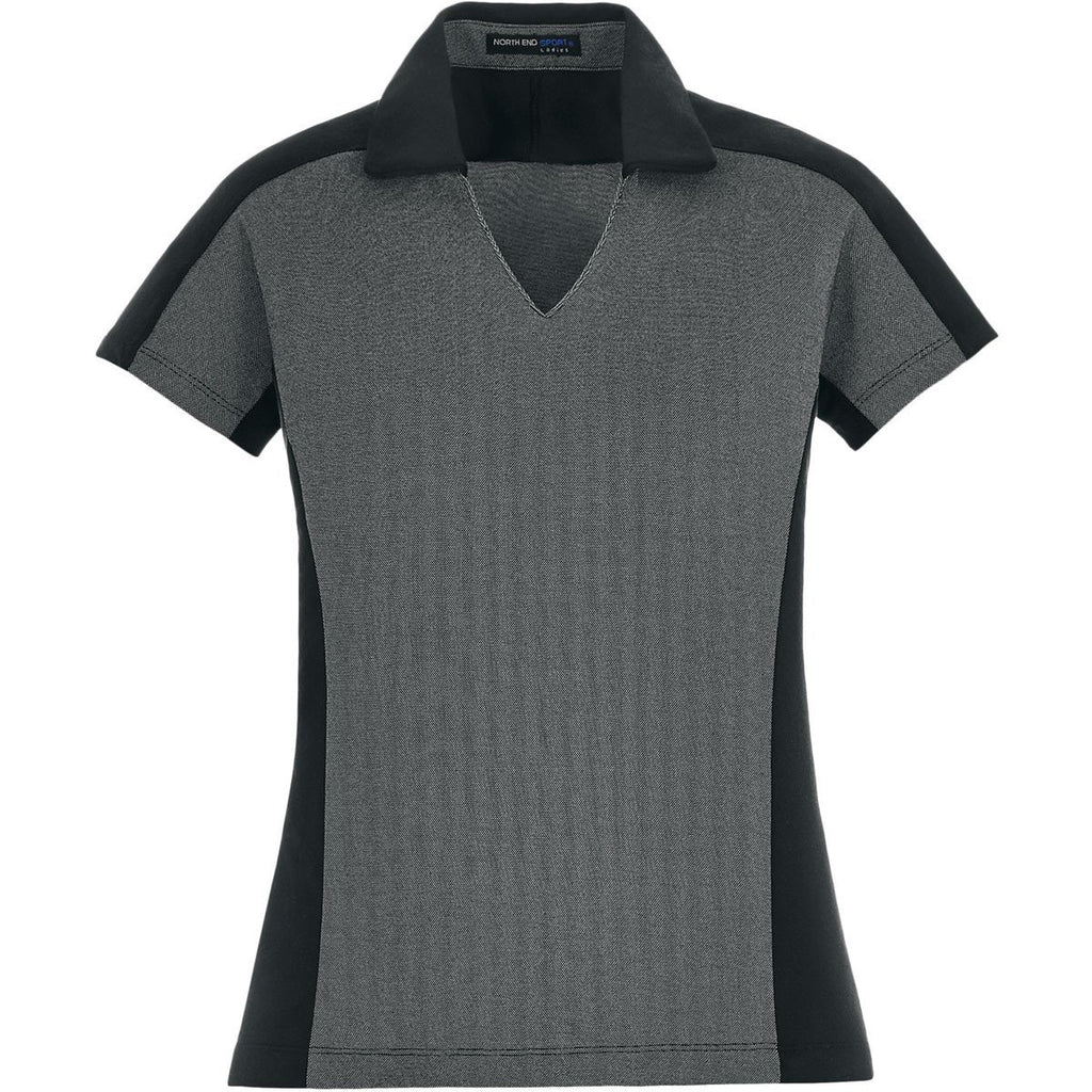 North End Women's Black Merge Blend Melange Polo