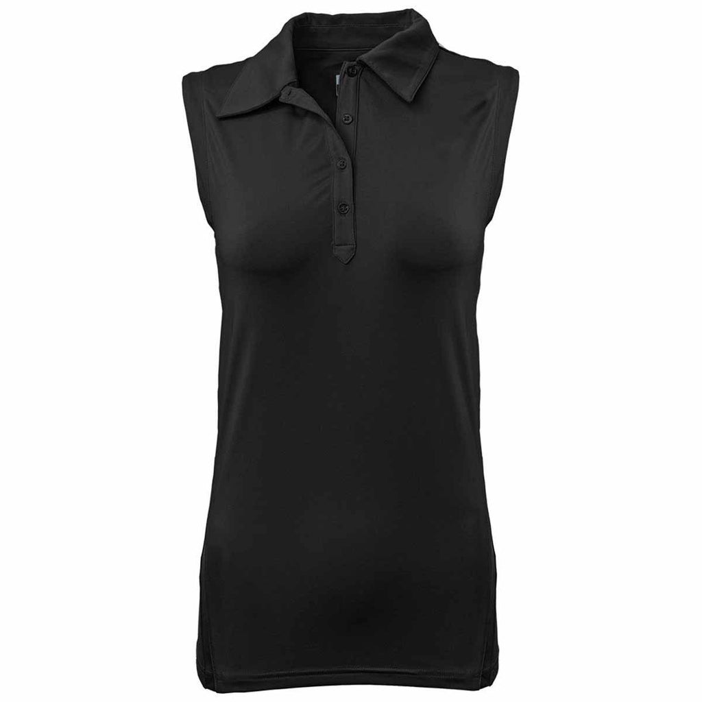 With a UV 50 rating, the company logoed Levelwear Women's Black Pure Sleeveless Polo acts as quality barrier between the sun and your skin on days in the sun. Rugged polyester contains just enough spandex to produce a stretchable fabric that conforms to maintain your comfort all day long. Anti static properties eliminate annoying shocks to the skin. Attach your corporate logo on the large imprint area to create more exposure for your company at business seminars. With a custom logo, you bolster your brand image in the community. While also outfitting your hard working employees and unifying your team.Highlights