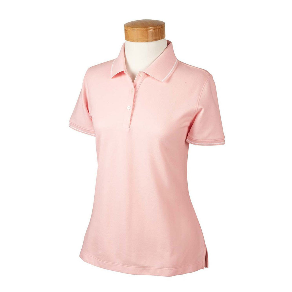 Devon & Jones Women's Pink/White Pima Pique Short-Sleeve Tipped PoloHighlights