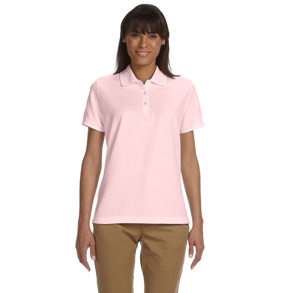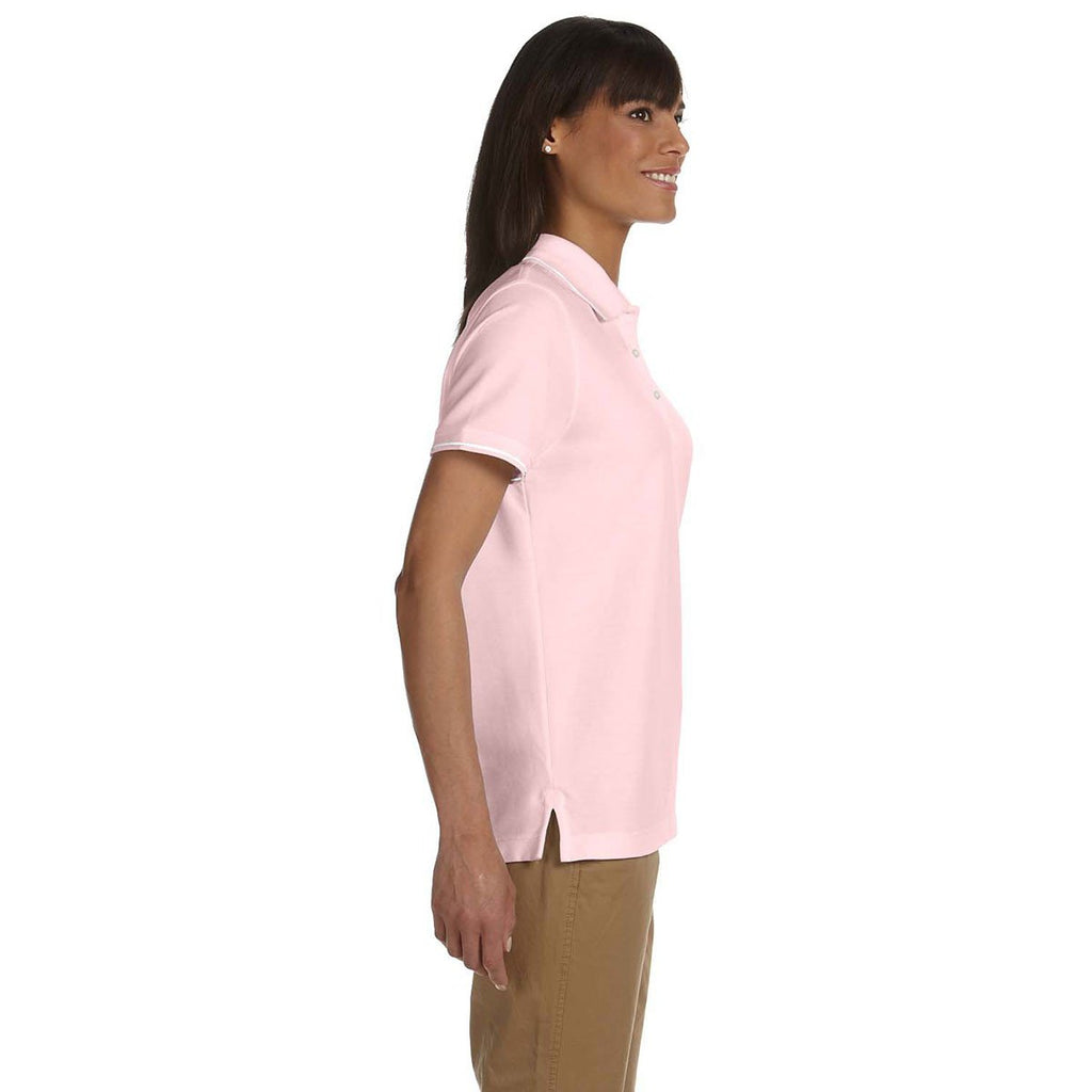 Devon & Jones Women's Pink/White Pima Pique Short-Sleeve Tipped Polo