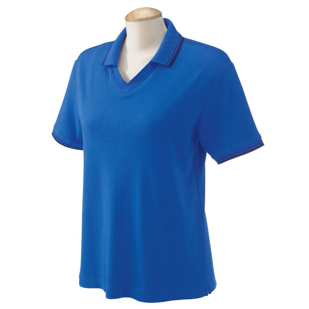 Devon & Jones Women's French Blue/Navy Tipped Perfect Pima Interlock PoloCorresponding Men's Style: Devon & Jones Men's French Blue/Navy Tipped Perfect Pima Interlock Polo