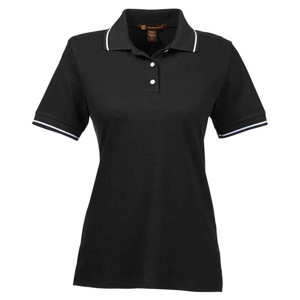 Harriton Women's Black/White 5.6 oz. Tipped Easy Blend Polo