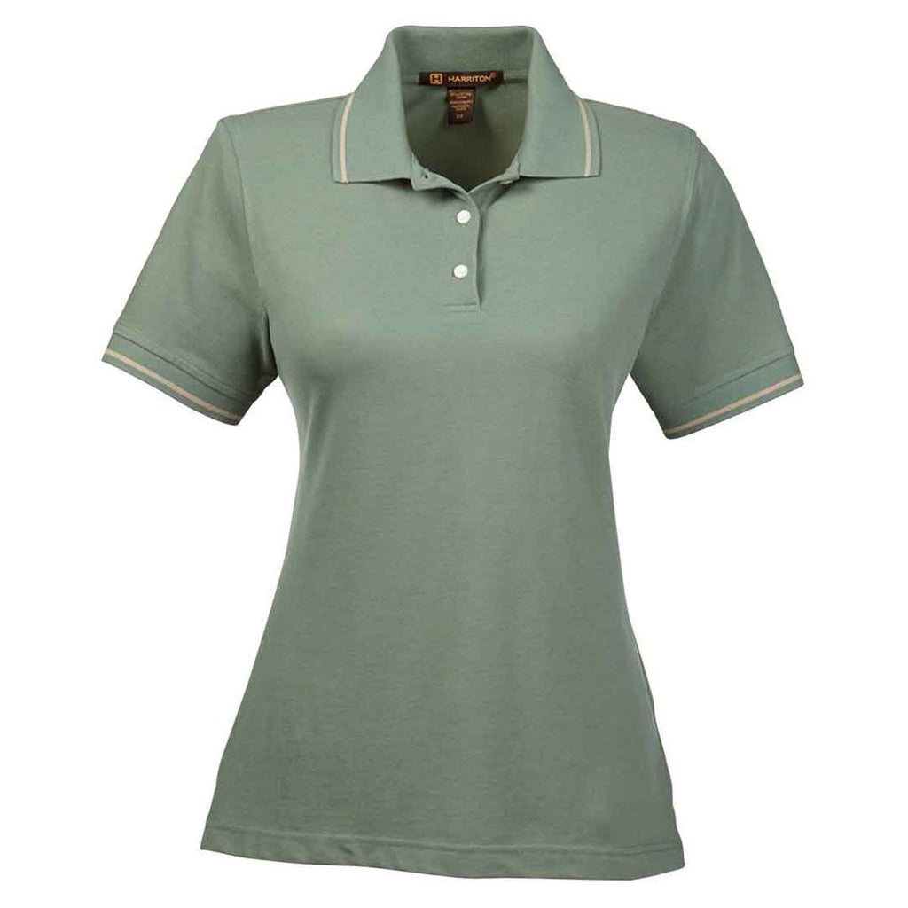 Harriton Women's Dill/Stone 5.6 oz. Tipped Easy Blend Polo