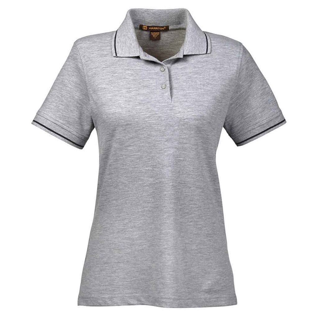 Harriton Women's Grey Heather/Black 5.6 oz. Tipped Easy Blend Polo