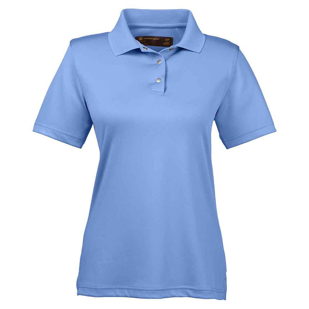 Trying to find the perfect work shirt for your team can be difficult, seeing that everyone on your team has a preference for a different fashion style. The Harriton Women's Industry Blue Advantage IL Snap Placket Performance Polo gives you the answer to your corporate apparel dilemma. Enjoy snag protection that prevents the 100% polyester polo from ripping and tearing. Antimicrobial properties make the shirt ideal for working on all day outdoor home improvement projects. Extra body length ensures the polo remains tucked into a pair of work pants. Side slits circulate air to cool the upper body. Attach your corporate logo to reach more customer prospects.Corresponding Men's Style: Harriton Men's Industry Blue Advantage IL Snap Placket Performance Polo