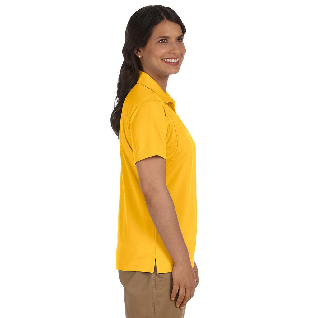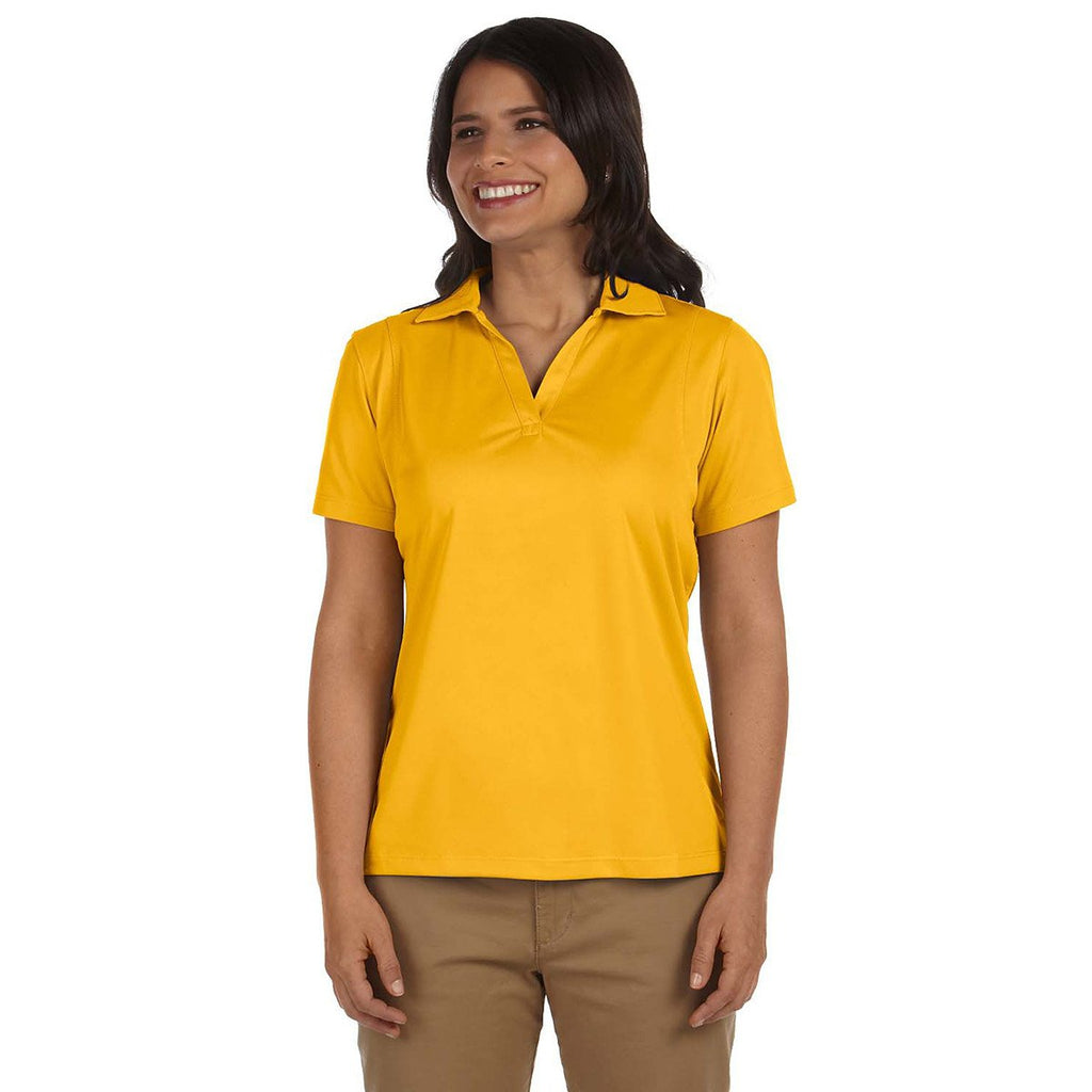 Lightweight 100% polyester contains snag resistant properties that prevent turning the Harriton Women's Gold Micro-Pique Polo into a shredded mess. Panel inserts located along the sleeves improve the performance of the polo during golf outings and prolonged camping trips. The feminine overlapping V-neck collar will be a conversation starter at your next professional networking event. Just remember to attach your company logo to keep the conversation going. Moisture wicking technology prevents the unsightly perspiration stains that diminish corporate apparel quality. Make the polo the choice for the gift you hand out to employees and loyal customers at a company event.Corresponding Men's Style: Harriton Men's Gold Micro-Pique Polo