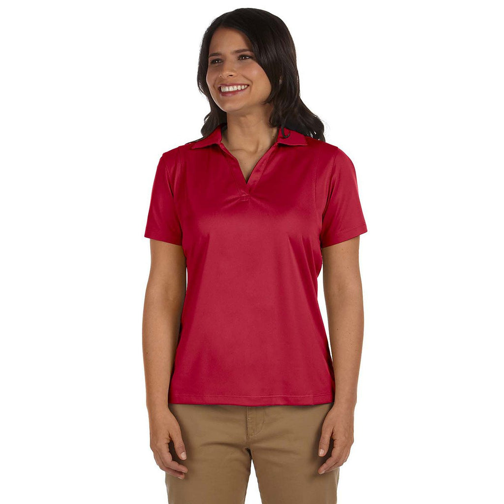 Lightweight 100% polyester contains snag resistant properties that prevent turning the Harriton Women's Red Micro-Pique Polo into a shredded mess. Panel inserts located along the sleeves improve the performance of the polo during golf outings and prolonged camping trips. The feminine overlapping V-neck collar will be a conversation starter at your next professional networking event. Just remember to attach your company logo to keep the conversation going. Moisture wicking technology prevents the unsightly perspiration stains that diminish corporate apparel quality. Make the polo the choice for the gift you hand out to employees and loyal customers at a company event.Corresponding Men's Style: Harriton Men's Red Micro-Pique Polo