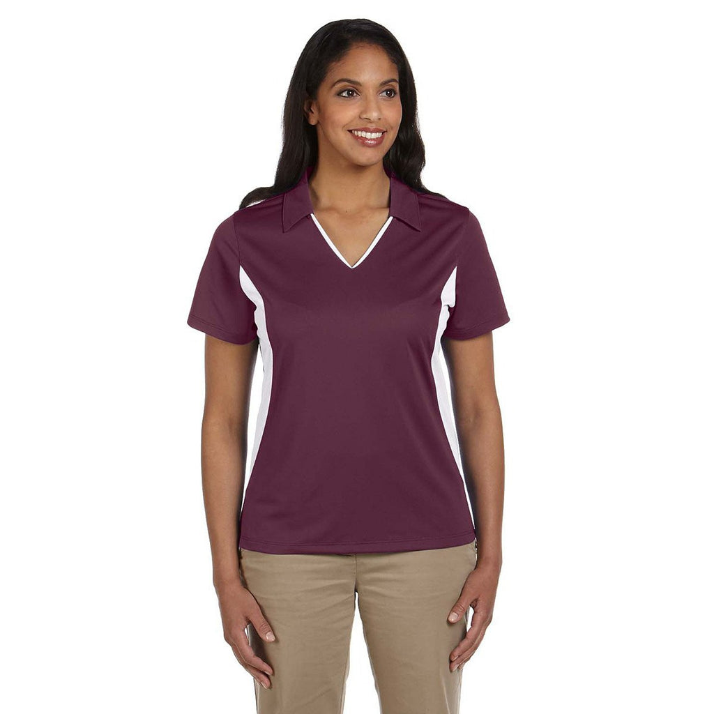 Harriton Women's Maroon/White Side Blocked Micro-Pique Polo