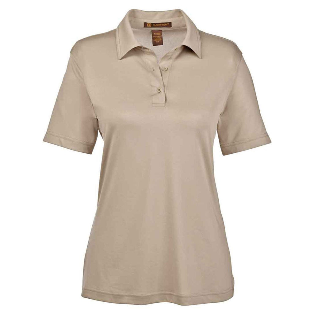 Attach a custom logo to the Harriton Women's Khaki Cayman Performance Polo to increase awareness of your company at civic events. The large imprint area offers a cost effective way to reach customer prospects that want to know more about your products and services. The snag proof polo resists the types of rips and tears that render other styles of polos obsolete. Wear the versatile polo to the office and leave it on after work hours to make a positive fashion statement. The summer weight jersey offers you the ideal upper body garment for high performance use on the golf course and softball field.Highlights