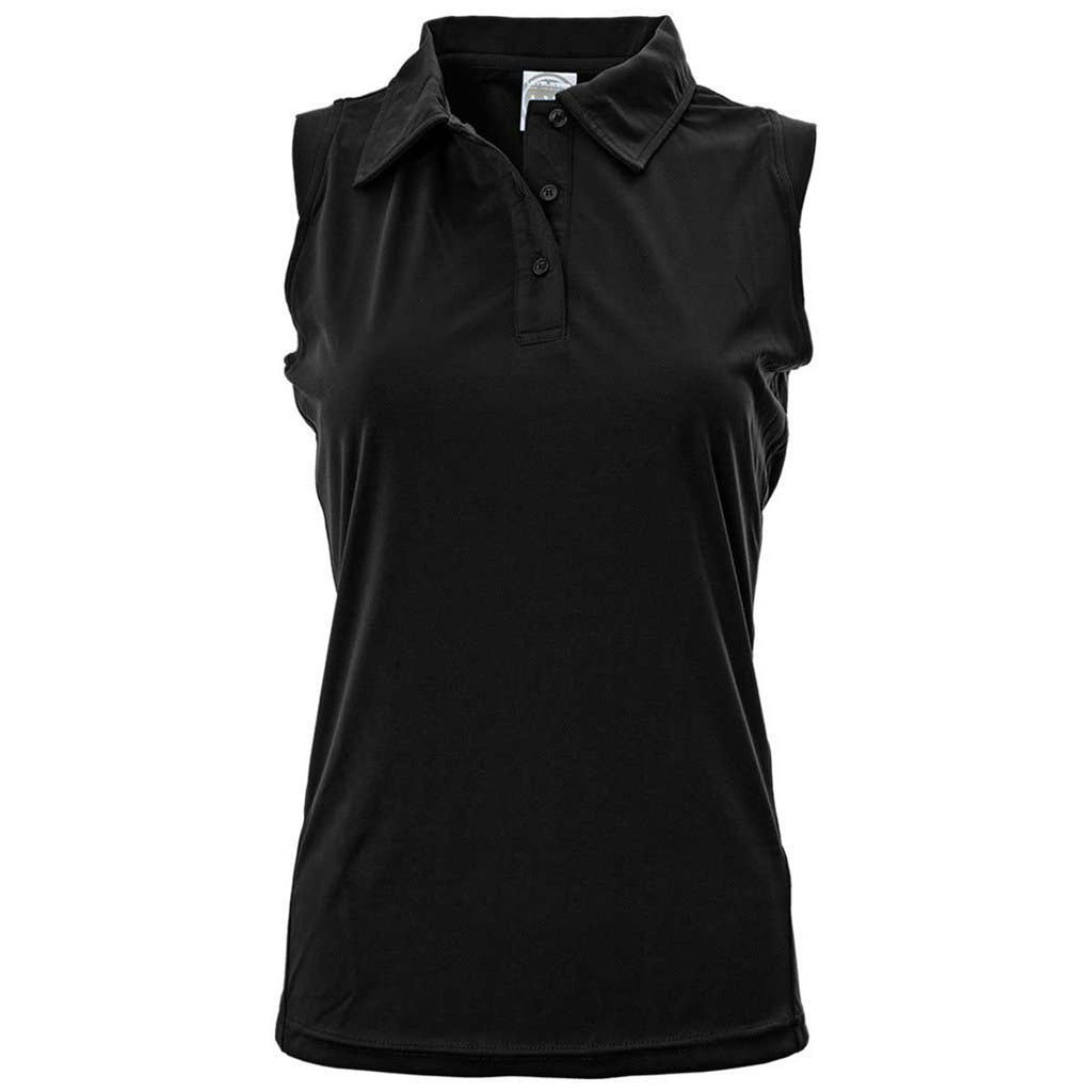 Take corporate apparel to the next level by ordering the embroidered Levelwear Women's Black Foundation Sleeveless Polo for your hard working team. Stretchable inter lock fabric allows you to gain an advantage over fellow competitors on the golf course and softball field. Anti-static properties eliminate the discomfort of several sudden small shocks to the skin. Moisture wicking technology quickly removes discomfort to cool your body. The sleeveless styling and rib knit shoulder details create a new spin on a classic style. Add a custom logo on the large imprint area to increase your brand recognition.Highlights