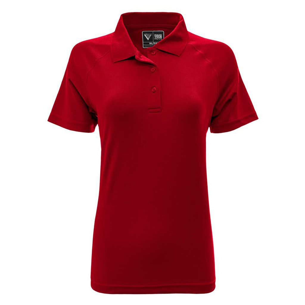 Receive the ultimate in ultra violet ray protection by wearing the company logoed Levelwear Women's Flame Red Balance Polo. The high UV protection rating ensures the sun never damages your skin while you are out on the golf course or at a company event. Moisture wicking technology swiftly evaporates discomfort to cool the skin. Give the stylish polo to the members of your accomplished team of employees to thank them for their hard work. Add a custom logo on the large imprint area to turn your talented employees into walking advertisements for your company. A polo is a great option to both outfit your team and promote your brand with ease.Highlights