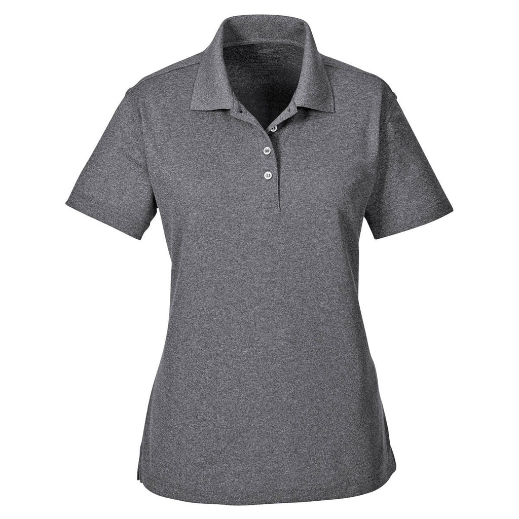 The four-button narrow feminine placket on the UltraClub Women's Black Heather Heathered Pique Polo makes a positive impression on the professional peers you meet at business seminars. Turn the positive impressions into sales by attaching your corporate logo to the large imprint area. Side slits present a chic appearance, as well as circulate air to cool your body during intense business negotiations. Moisture wicking technology increases your comfort level by evaporating sweat to dry the skin. Enjoy long lasting durability from the 100% tough to rip and tear heathered polyester pique polo. The matching flat-knit collar presents a professional image in front of potential customers of your business.Corresponding Men's Style: UltraClub Men's Black Heather Heathered Pique Polo