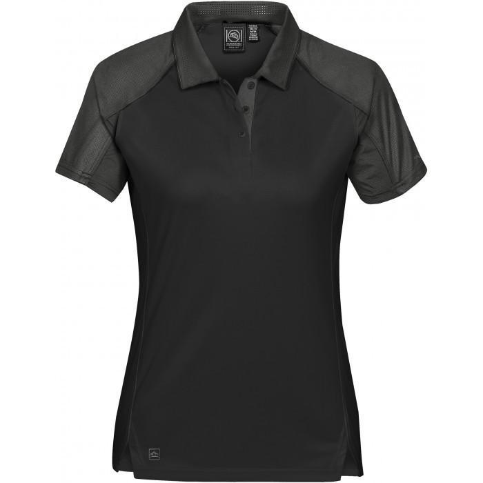 Slim fitting with sporty style, the Stormtech Women's Black/Graphite Vector Polo is the perfect backdrop for your company logo or team name. The two-tone design is eye-catching while features like moisture-wicking, mesh underarms, and ventilation holes in the collar make it truly comfortable to wear. Incorporate it as part of your uniform or give it away as a company gift.Corresponding Men's Style: Stormtech Men's Black/Graphite Vector Polo