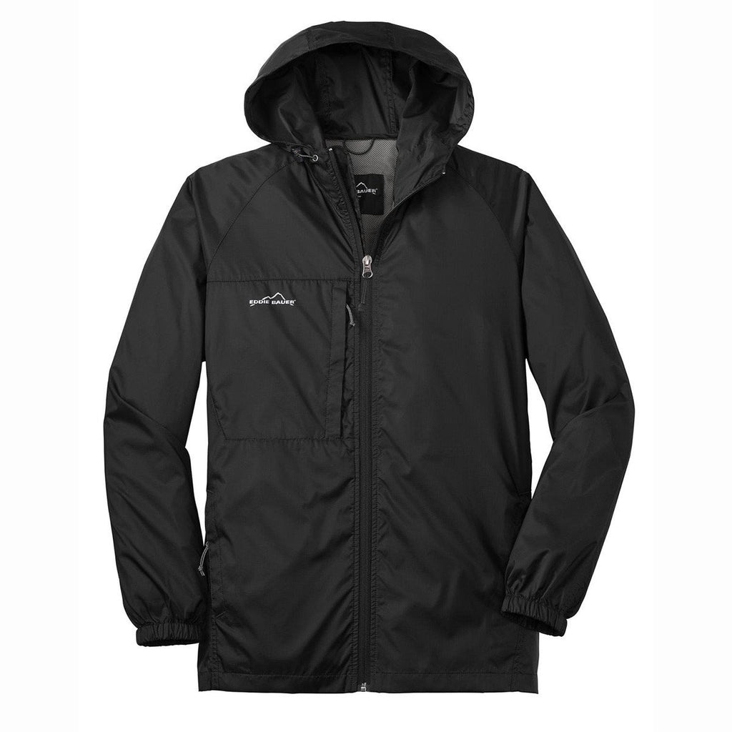 If you want to talk about functional' wind jackets, then the conversation should start here. Eddie Bauer Men's Black Packable Wind Jacket isn't just about the function of protecting you from the wind'even though it does a stellar job of that. But the fact that it can pack down into the size of a pocket ensures that this isn't just the wind jacket for all seasons, but the wind jacket for all situations. It has all the frills'reverse coil zippers, underarm vents, a packable zippered chest pocket'but does it all while being the most travel-friendly jacket imaginable. With a custom corporate logo on the front, you can give your employees instant travel-ready gear with one essential item.Corresponding Women's Style: Eddie Bauer Women's Black Packable Wind Jacket