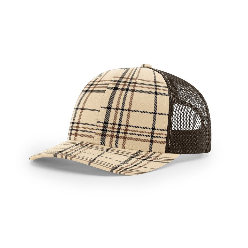 Richardson Khaki/Black/Brown Mesh Back Plaid Printed Trucker Hat