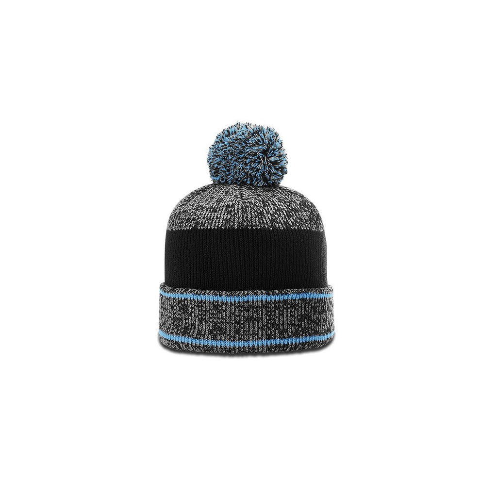 Richardson Grey/Columbia Blue/Black Heathered Pom Beanie with Cuff