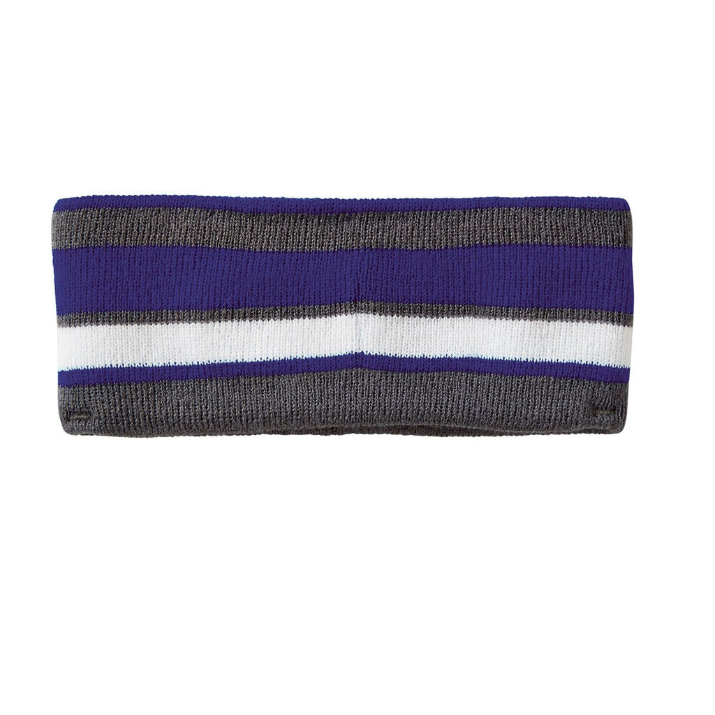 With micro fleece lining, the decorated Holloway Purple/White/Graphite Acrylic Rib Knit Comeback Headband enhances the wind resistance of the cold weather fashion accessory. Micro fleece lining also traps body heat to create another cold air barrier that frustrates Old Man Winter. Rugged 100% acrylic rib-knit fabric resists the types of rips and tears that turn other styles of headbands into fabric messes. The headband works well for athletes who compete in warm weather sports, as well as an interior layer of extra protection underneath a thick wool winter hat for cold weather recreational activities. Add your company logo on the large imprint area to get the word out about your brand.Highlights