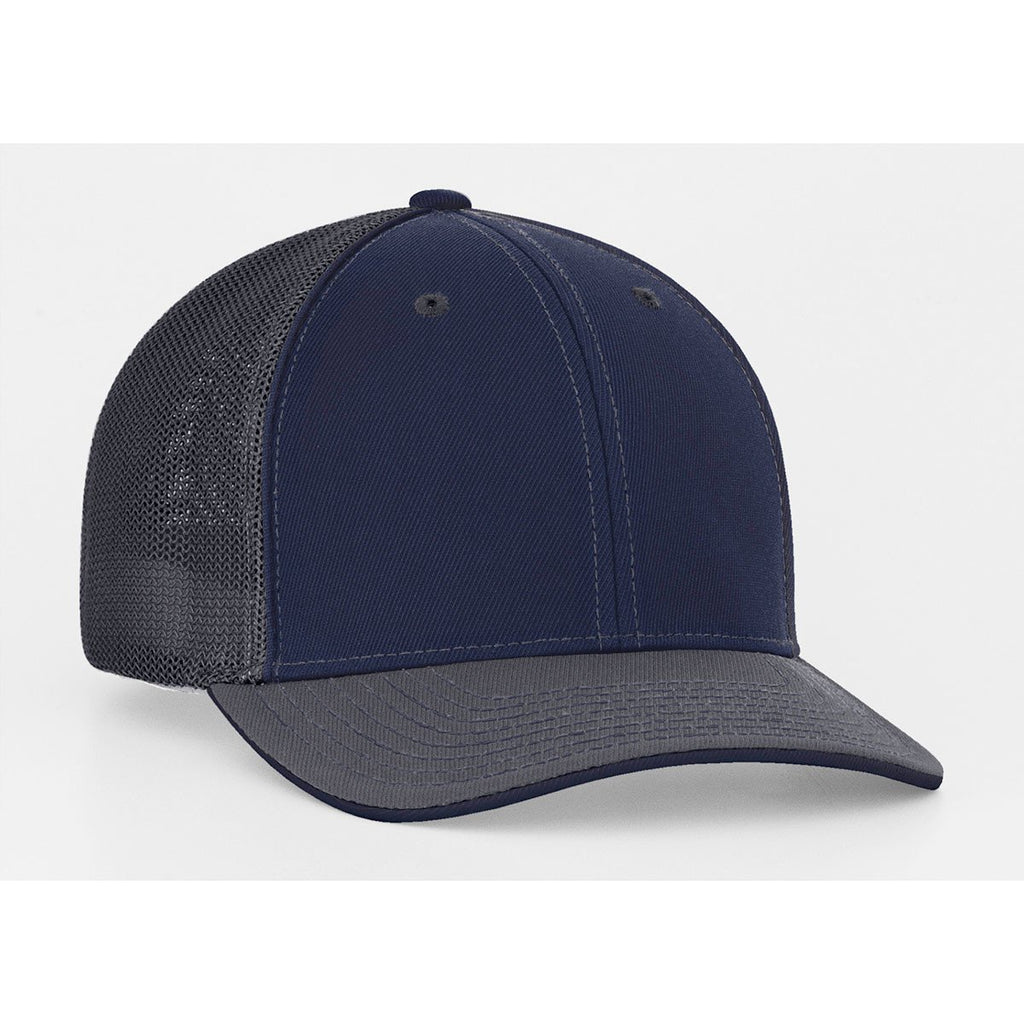The logoed Pacific Headwear Navy/Graphite Universal Fitted Trucker Mesh Cap makes the ideal corporate gift for savvy managers who want to impress potential clients. Whenever you invite customer prospects to the office or plant, add a custom logo that leaves a positive impression on your guests. The comfortable cap contains a spandex Trucker mesh back to stretch and fit most size heads. Air circulates through the durable mesh to keep you cool under pressure. M3 performance fabric front panels create a structured appearance that leaves no doubt who is in charge. Logoed corporate apparel helps increase sales by getting the word about your company.Highlights
