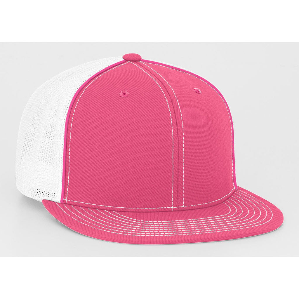 The flat bill of the logoed Pacific Headwear Pink/White D-Series Fitted Trucker Mesh Cap remains firm for years to come. As one of the new cap styles, the flat bill makes a bold fashion statement and it protects your eyes from the sun. The major league structured profile will have your professional peers envious at the next corporate softball game. By adding a custom logo, you create interest in your company at outdoor civic events. M3 performance fabric front panels resist rips and tears, as well as endure frequent use. Enjoy air circulation produced by the design of the stretchable spandex Trucker mesh back.Highlights