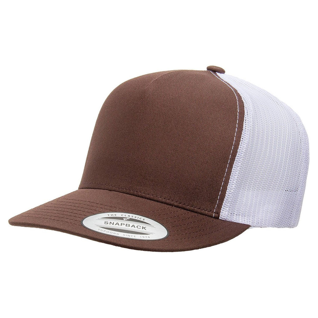Yupoong Brown/White Adult 5-Panel Classic Trucker Cap