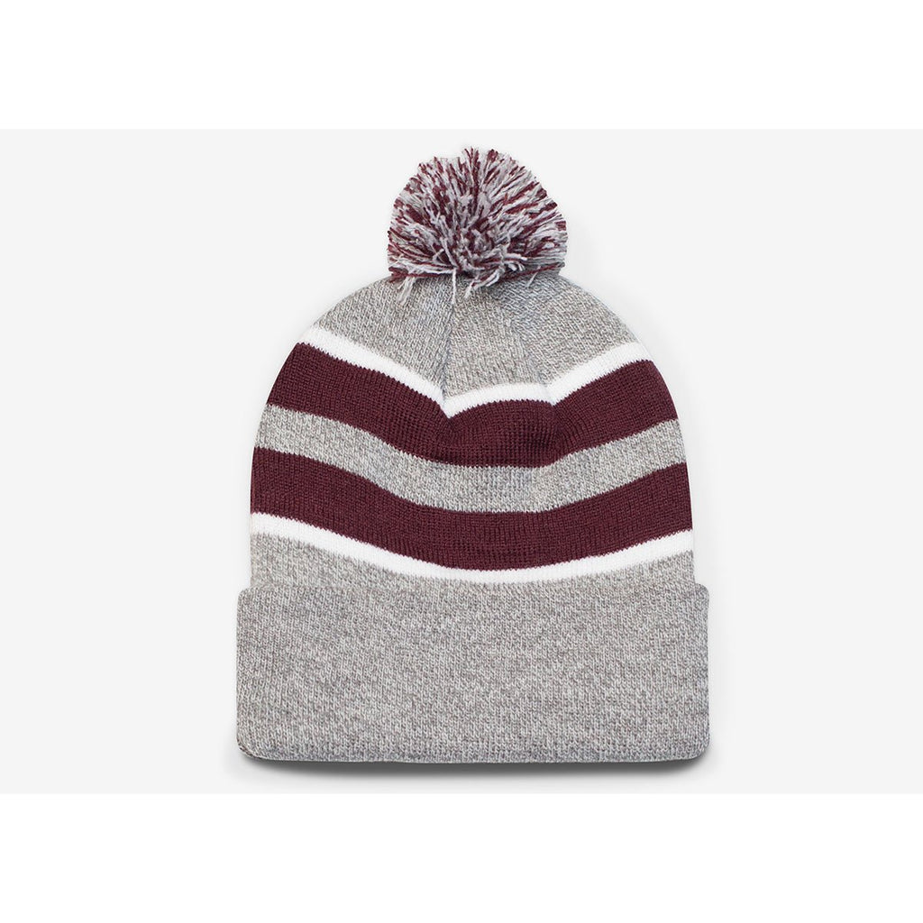 Pacific Headwear Heather Maroon/White Loose Fit Pom-Pom Beanie