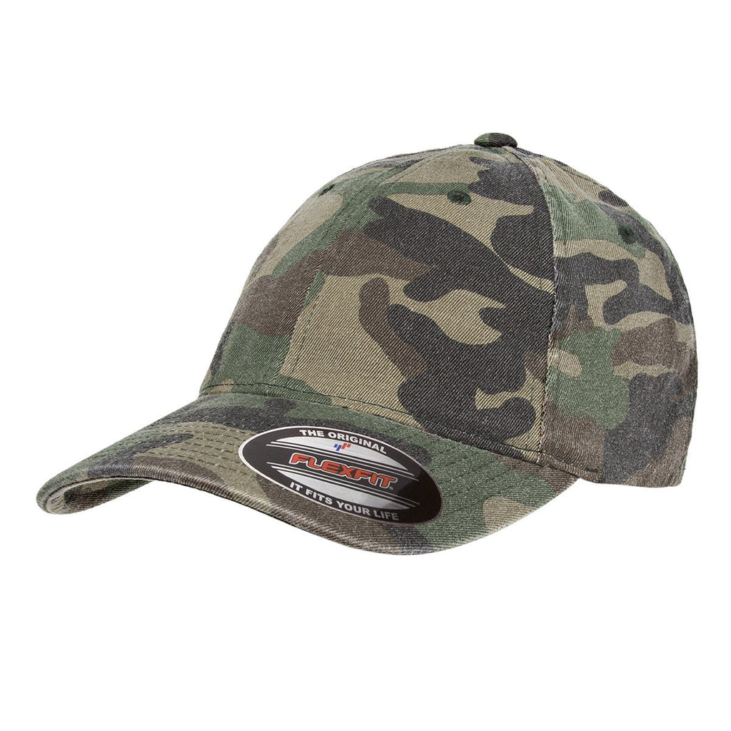 Camouflage isn't just a way of hiding from your enemies. Hopefully you have no enemies. Instead, camouflage has become a fashion statement. Case in point: this Flexfit Green Camo Cotton Camouflage Cap. With sewn eyelets and a spandex sweat band that will retain its shape even after accruing your sweat, it has both style and functionality. And it has both of them in droves. All that's really missing here is your own unique corporate or unique logo on the front. Armed with your own unique brand, you can use this as a gift, giveaway, or promotional item for your enterprise. And a stylish one at that.Highlights