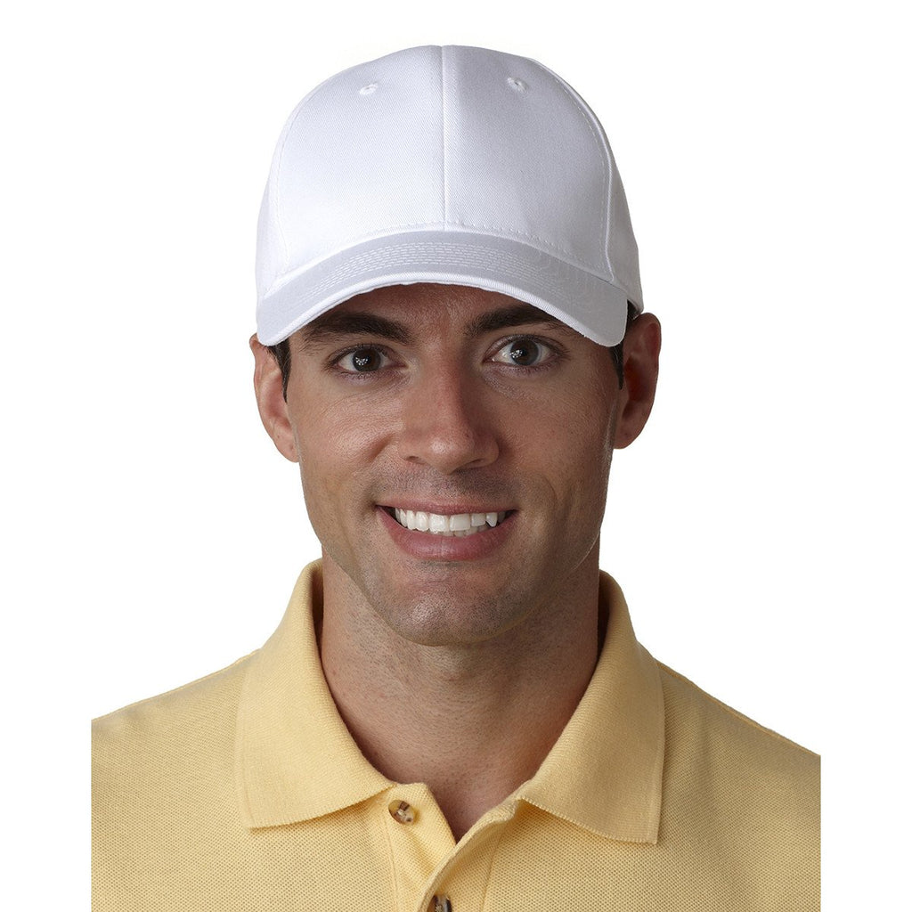 UltraClub Men's White Classic Cut Chino Cotton Twill Structured Cap