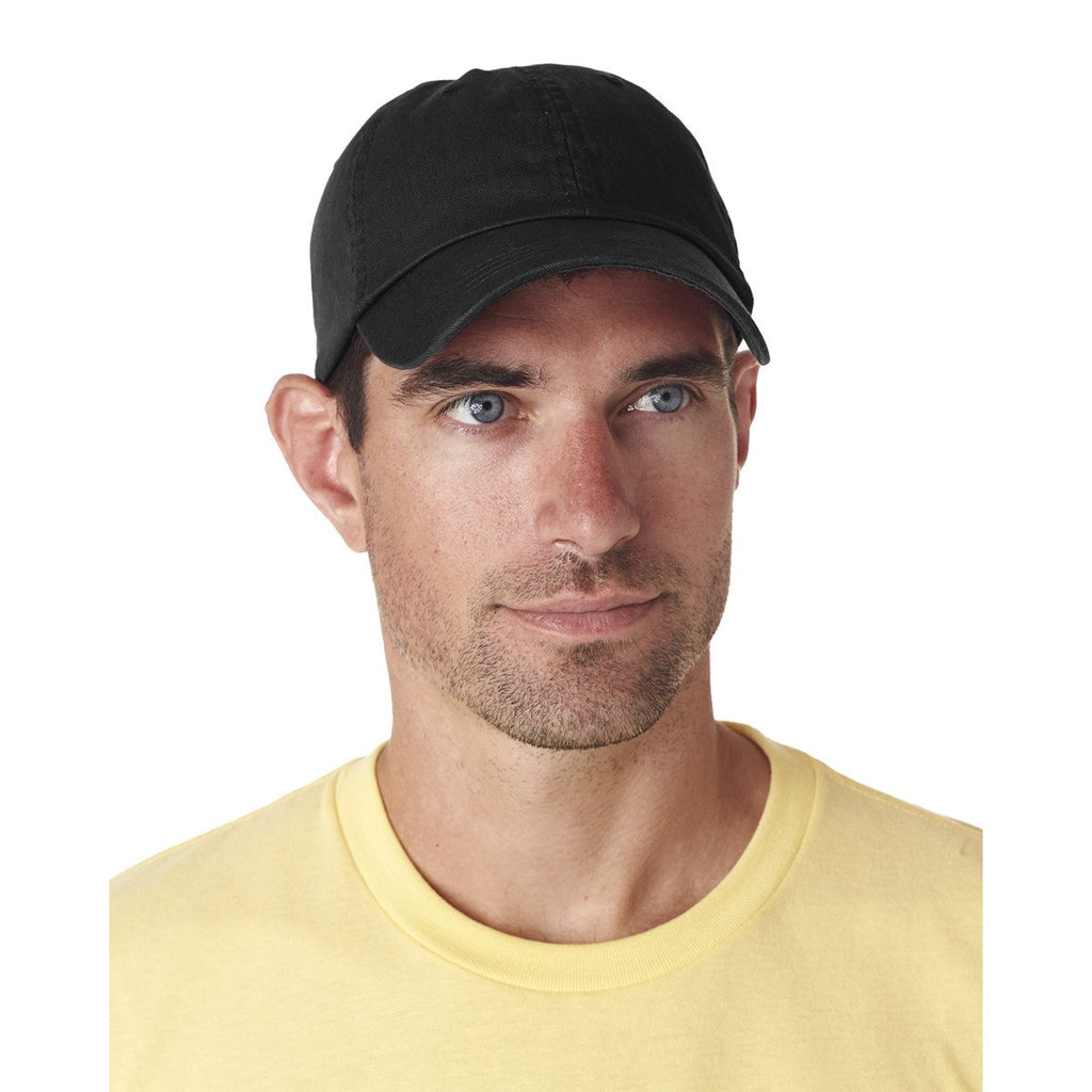 UltraClub Men's Black Classic Cut Chino Cotton Twill Unconstructed Cap