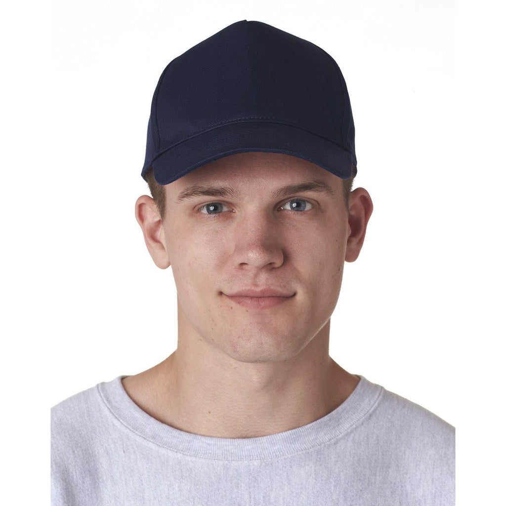 UltraClub Men's Navy Classic Cut Cotton Twill 5-Panel Cap