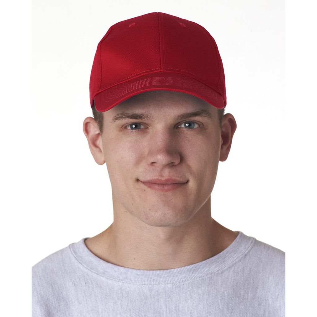 UltraClub Men's Red Classic Cut Cotton Twill 6-Panel Cap