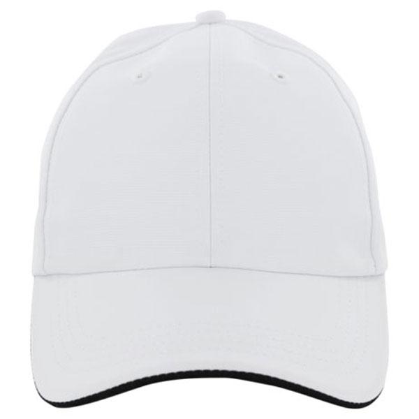 Your custom logo on the AHEAD White/Black Textured Poly Solid Cap will be an ideal gift for corporate events. It is a cap with a classic cut, so your corporate logo will look great embroidered on the large front side. This cap is made of textured poly and has an elegant lip edged visor. It is unstructured and has a velcro tab with loop grab for adjustments. Your employees will appreciate this high quality gift and wear it for years to come. Make your logo shine with the AHEAD White/Black Textured Poly Solid Cap.