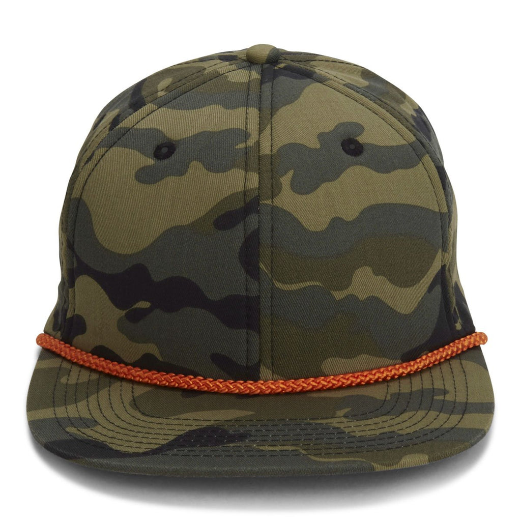 A slight foam backing is included on this Paramount Apparel Woodland/Orange Foam Backed Rope Cap to create a comfortable surface. You will notice a rope-like surface around the end of the bill as it connects to the rest of the hat. The weave on the rope adds a sturdy body that will not come apart. The flat visor adds a brilliant tone that you will want to show off anywhere. With the addition of your company's logo, this is a modern-styled product to have for a company uniform or as a gift to people in the workplace. The interesting accent makes this different from anything else you might find out there.